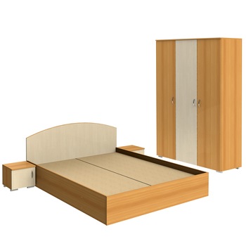 Set Dormitor SIESTA, cu Dulap 3 Usi, Pat si Noptiere, Cires / Mesteacan