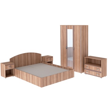 Set Dormitor FLORIN, cu Dulap 3 Usi, Comoda, Pat si Noptiere, Havanna
