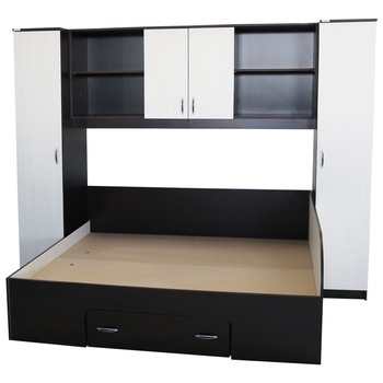 Dormitor Mario cu pat cu sertar la perete 140x190 cm, Wenge / Brad