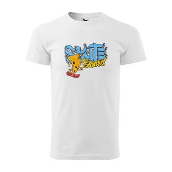 Tricou alb barbati, idee de cadou, pentru pasionatii de skateboard, Pizza Lover Skater, marime XL