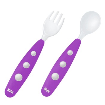 3cheaps - compară prețuri pentru Set 2 piese lingurita si furculita Nuk 255047M, Mov 8+ luni (255047M)
